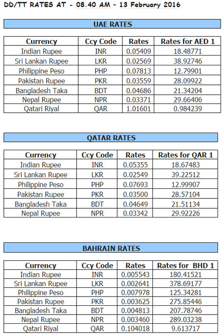 These will cover both the Remittance Rates [for sending money] and the Currency Notes Rates [for buying and selling of currency notes].